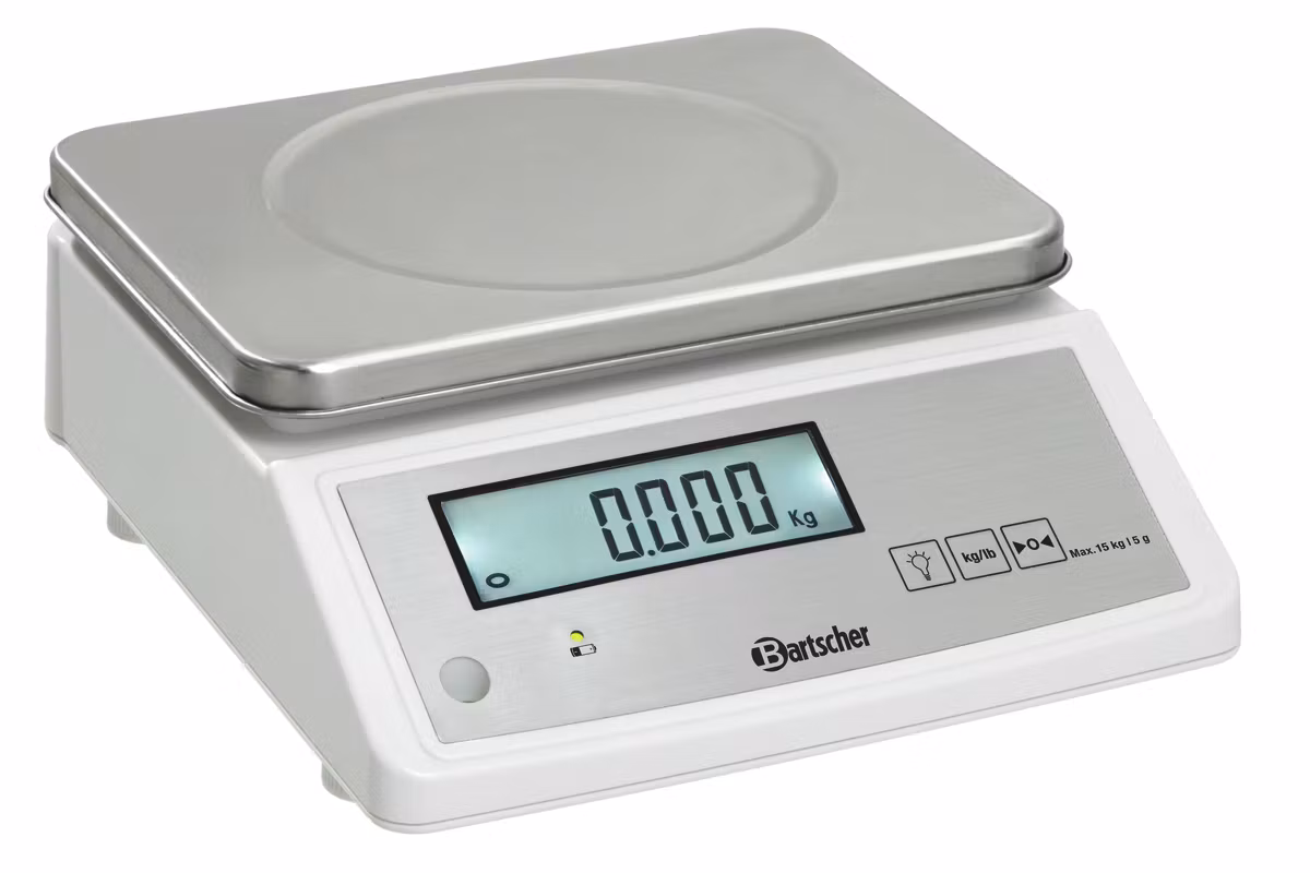 Digital köksvåg med mätförmåga upp till 15 kg och en vägningsyta på 280x220 mm. Vägning i g/kg/lb/oz. Vågens upplösning är 5g. Köksvägen drivs med batteri eller nätadapter. Touch manövrering och vattenpass för korrekt inriktning. För precisa vägningar i kök och produktion.