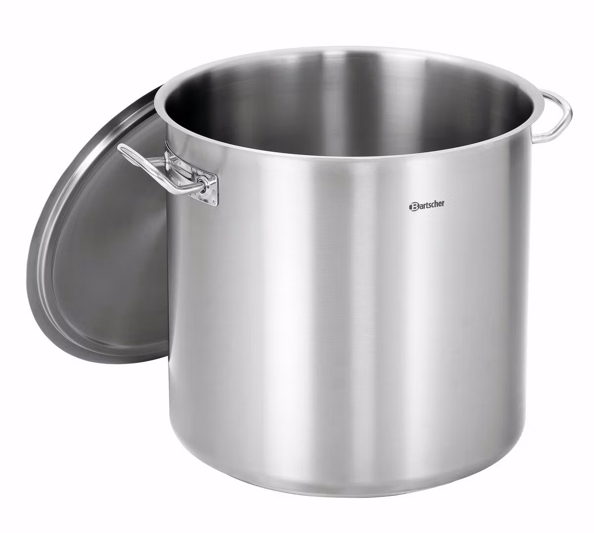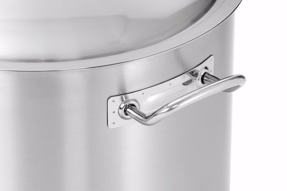 Stor rostfri kittel i XXL format för tillagning av upp till 70 liter. Lämplig för induktion. Inklusive lock.