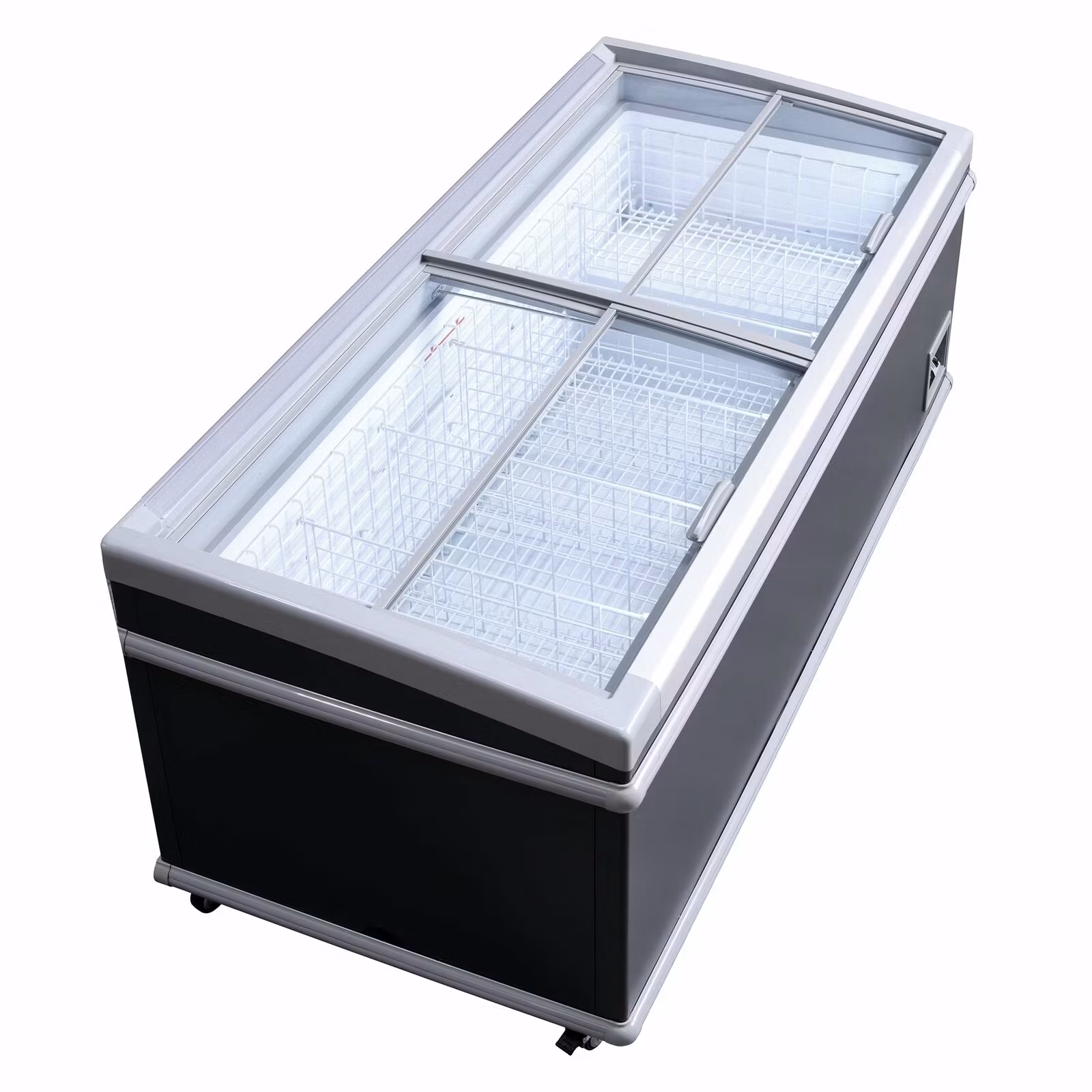 Mörkgrå frysgondol för livsmedelshandel. Stora böjda skjutbara glaslock med starka aluminiumhandtag. Frysgondolen har en dubbel kylfunktion, vilket innebär att den kan omvandlas från frysbox till kylbox. Frysgondolen har intelligent avfrostnings funktion som reducerar isbildning och optimerar frysens effektivitet. Frysdondolen har även automatisk larmfunktion som varnar för temperaturavvikelser och hjälper till att förhindra produktförluster och säkerställer att maten alltid förvaras under optimala förhållanden. Levereras med 6 kraftiga trådkorgar och 4 starka länkhjul. Frysgondolen har ett innerfoder i vitlackerat stål utvändig stötfångarstång och en digital termometer.
