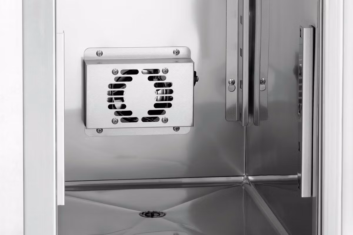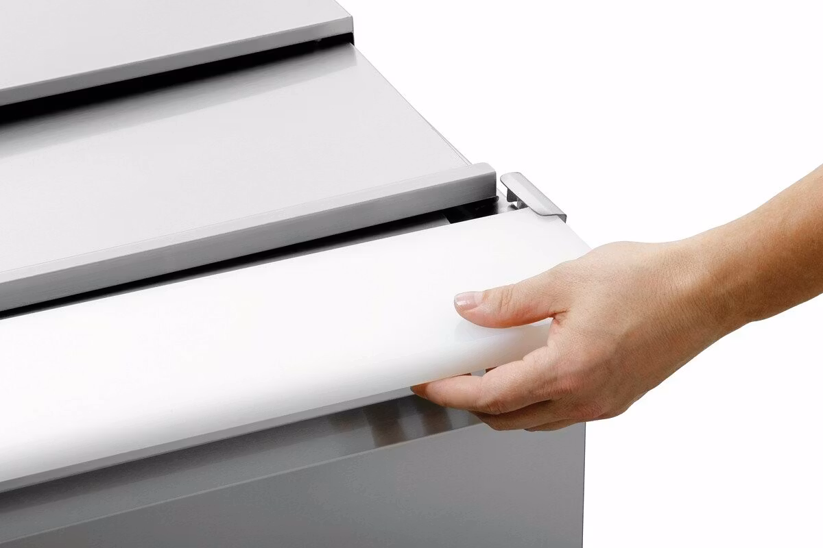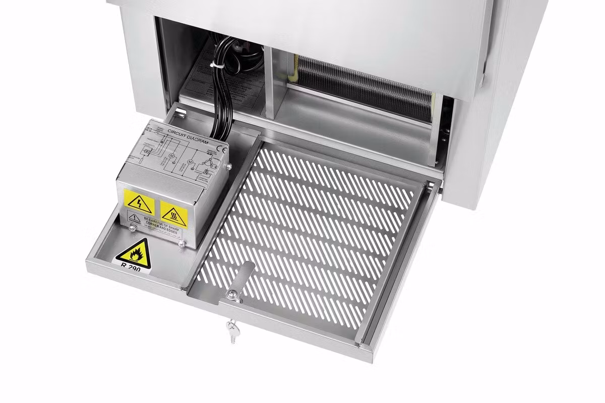 En kompakt saladette kylbänk med en dörr. Saladetten har en lyftbar topp samt skärbräda i polyetylen längs kanten. Saladettens brunn har plats för 1 GN 1/1-150 kantin. Försedd med en hylla i skåpet och justerbara fötter samt digital temperatur display.