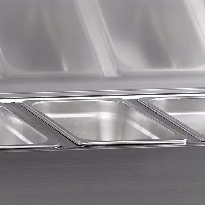 Kylrännan rymmer 7st GN 1/4 kantiner. Kantiner ingår ej.