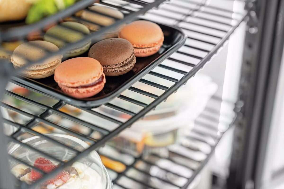Svart exponeringskyl med ventilerad kyla och glasade sidor för optimal produktvisning. Försedd med vertikal LED belysning samt 4st flyttbara hyllor. Exponeringskylen är perfekt till dryck, mackor, sallader och enklare konditoribitar m.m.