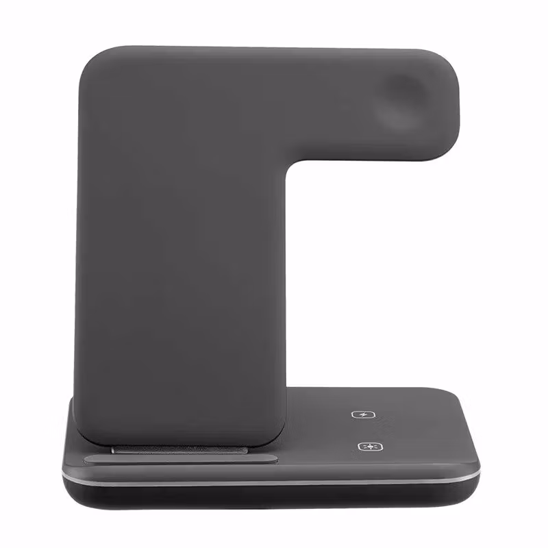 Ladda din Qi-standard smartphone, smartklocka och hörlurar samtidigt med tre laddningsytor. Utrustad med främmande föremålsdetektion och temperaturkontroll för extra säkerhet. LED-ljuslisten visar laddningsstatus och kan stängas av med en lätt beröring när du sover eller vilar.