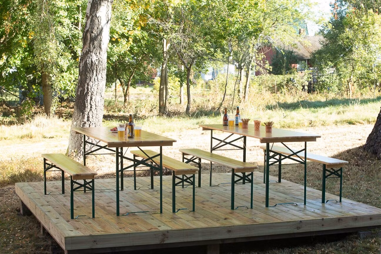 Berlin är ett bänkset i furu. Bänksetet passar perfekt till evenemang, mässor, fester, festivaler och picknickar. Både bänk och bord kan köpas separat. Basic utförandet finns i en storlek och Premium utförandet finns i tre storlekar.
