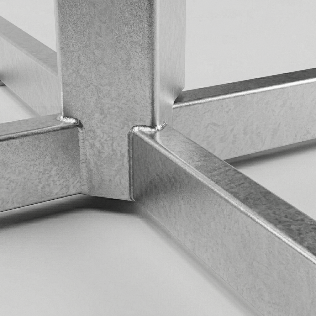 Patenterad pendeldesign som stabiliserar sig automatiskt på alla underlag – inne som ute. Konstruktion i två stålprofiler och en bult. Stativet fästs enkelt på valfri bordsskiva för att bevara önskad stil i restaurang eller bar. Passar till bordsskivor 60x70 / Ø80 cm.
