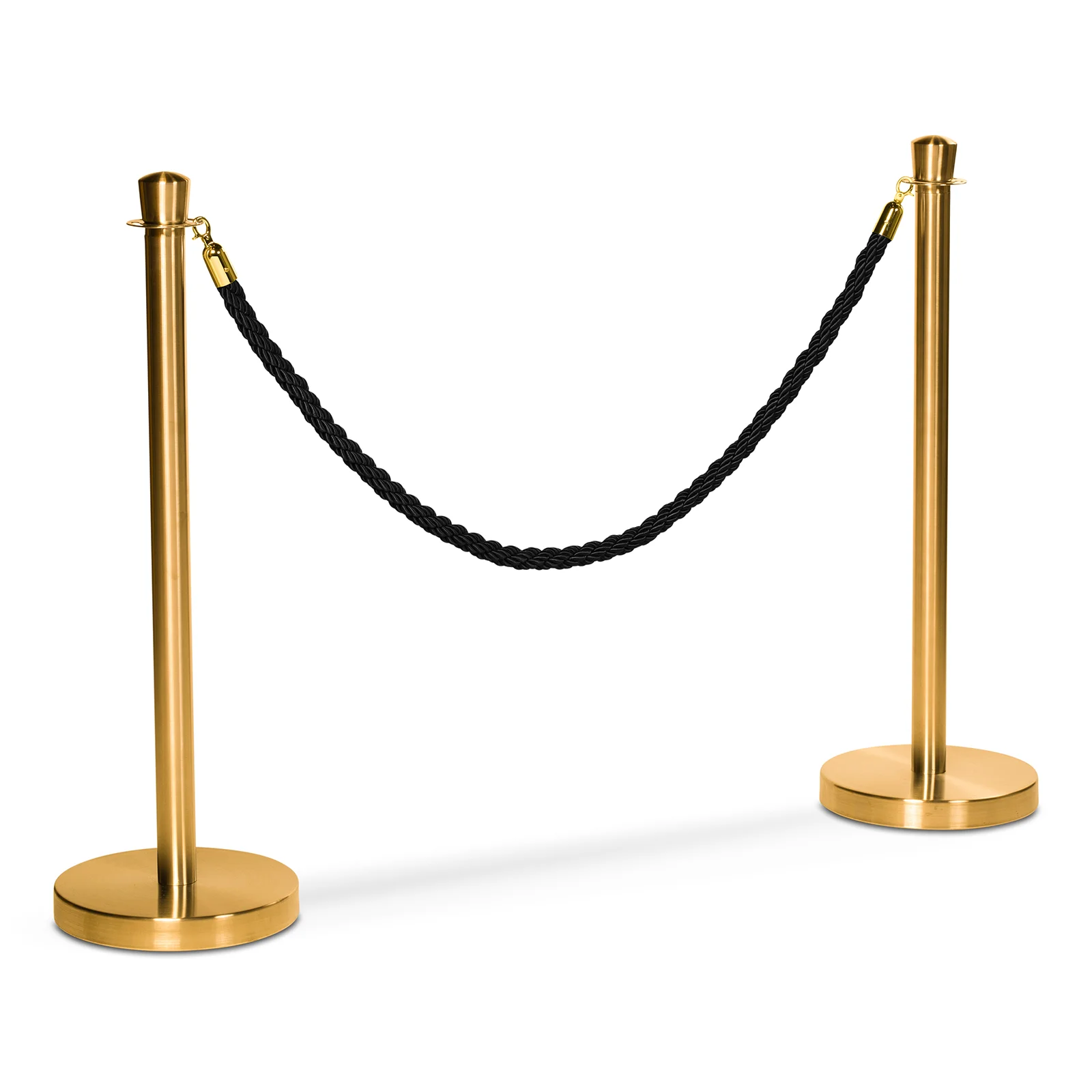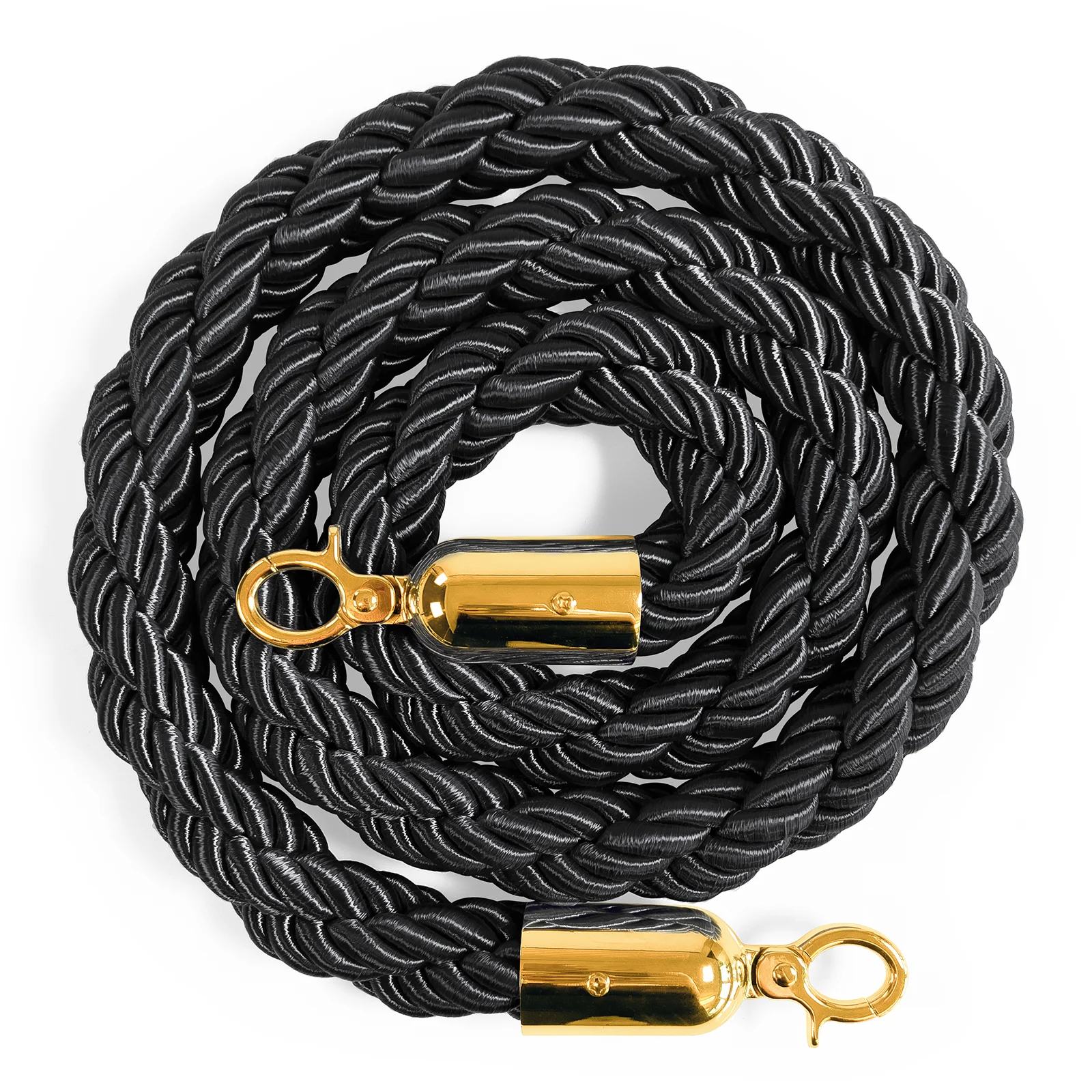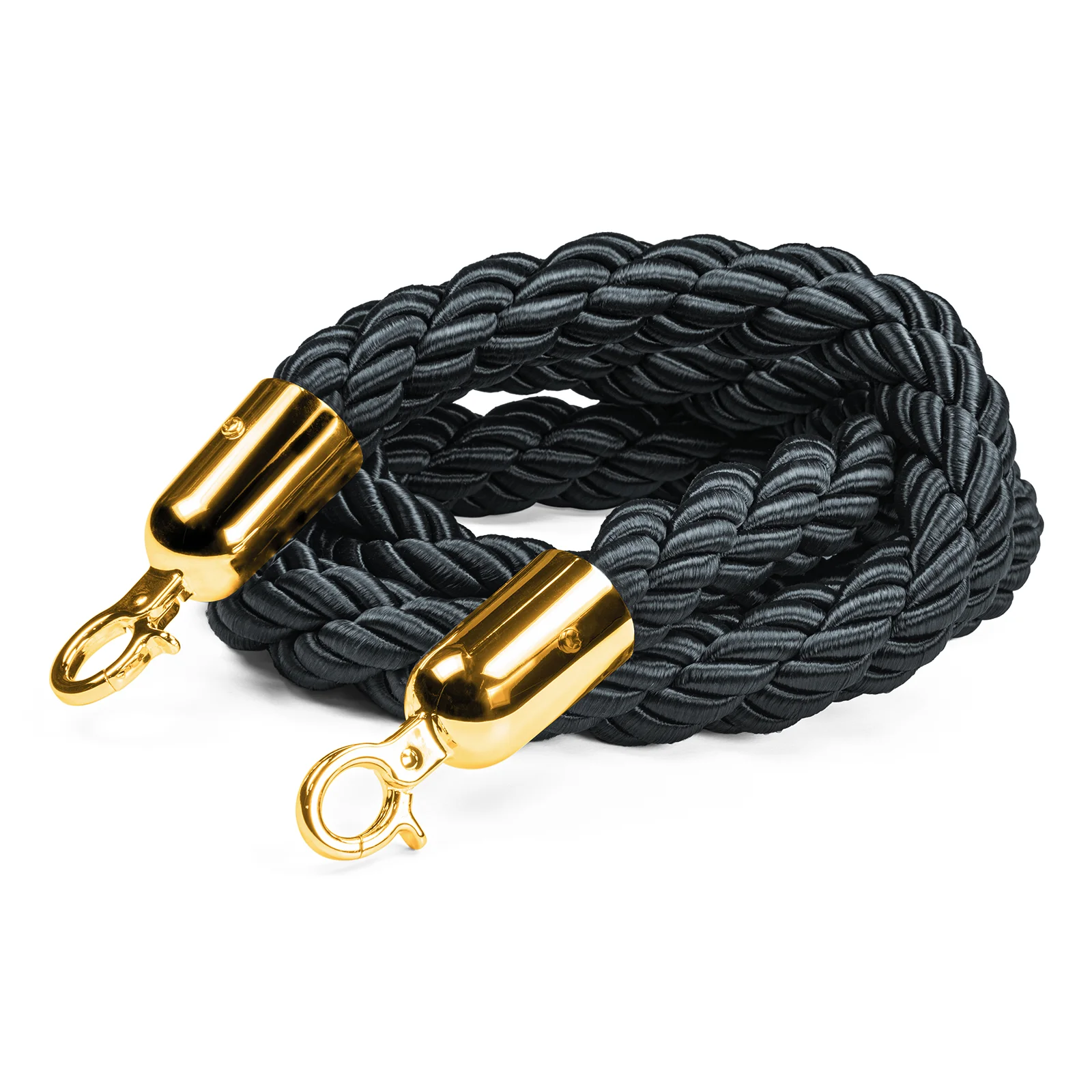 Flätat rep I svart och guldfärgade hakar för köstolpar. Skapar en tydlig avgränsning och finns i flera färger för enkel anpassning efter miljö och behov.