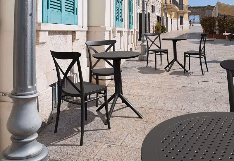 Formgivarna har både tänkt praktiskt och stilmässigt vid framtagningen av Cross stolens design. Cross är dels bekväm att sitta på samt praktiskt stapelbar men även elegant att titta på med sin klassiska vintage design. Cross stolen är lätt att möblera med i både inomhus- och utomhusutrymmen. Cross är en snygg och hållbar stol som används i restauranger, kaféer eller uteserveringar. Vart tycker Du att den passar in?