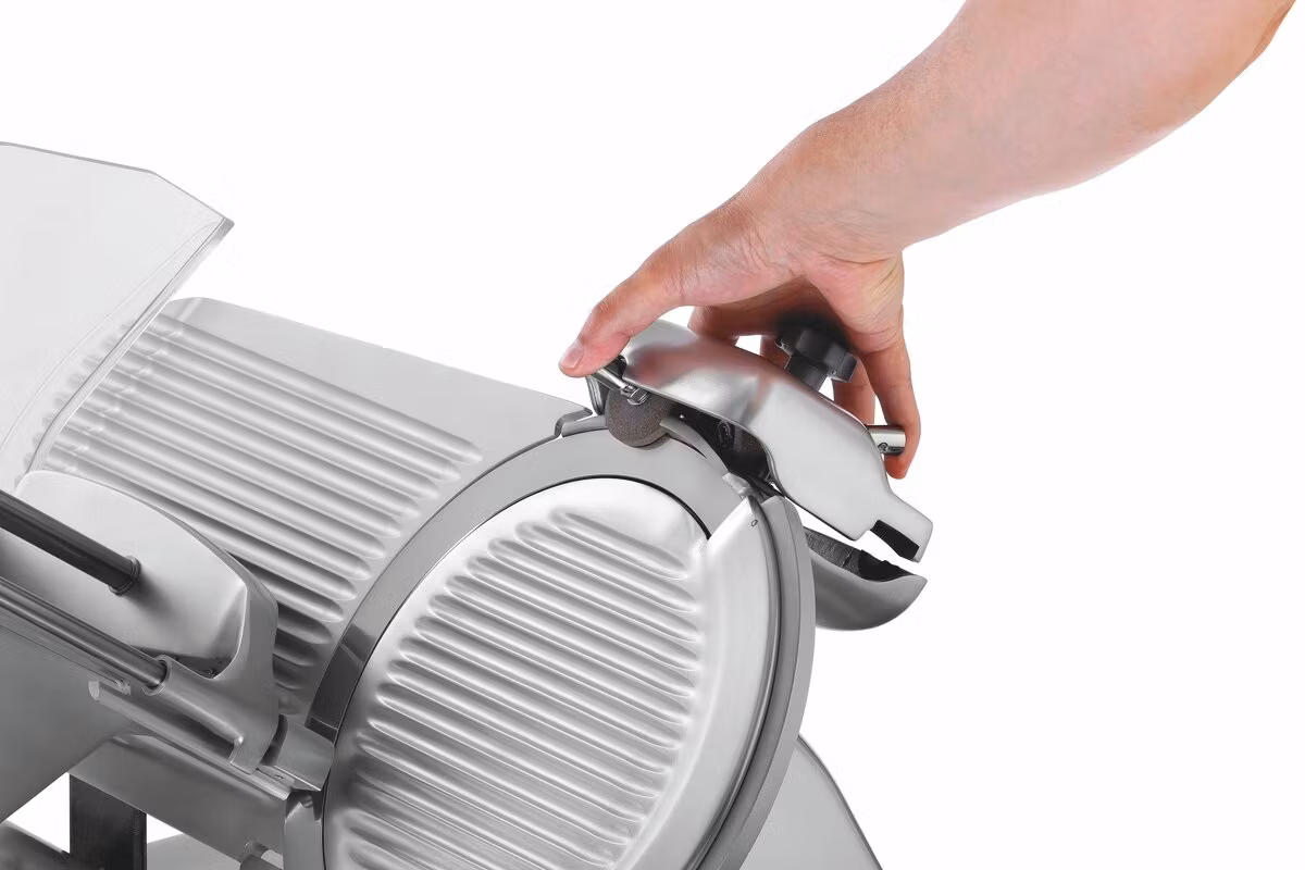 Skärmaskin PRO 300-G har en kraftfull konstruktion med låga underhållsvarv. En drevskärmaskin som är mycket lämpad för storkök och slakterier, avsedd för skärning av korv och ost.