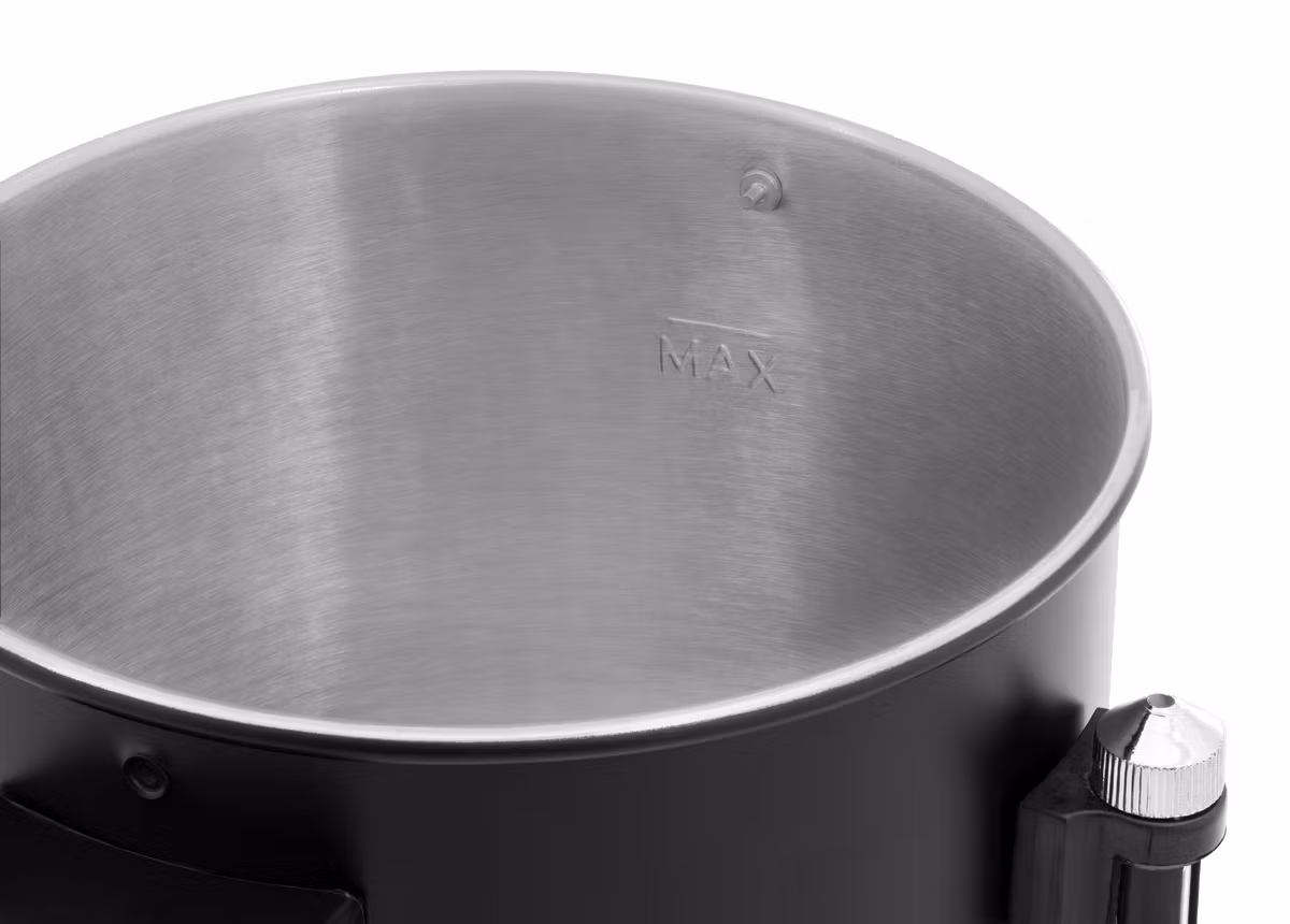 Svart hetvattenkokare som kan värma upp och varmhålla 10 liter vatten steglöst. Bäst lämpad för användning inom självbetjäningsområdet, under evenemang eller utomhus. En effekt på 2 500 watt säkerställer en snabb uppvärmning – effektiv i drift, idealisk när tiden är knapp. Elektronisk styrning och termostatfunktion gör att varmvattnet håller önskad temperatur i timmar – utan att behöva justeras hela tiden.