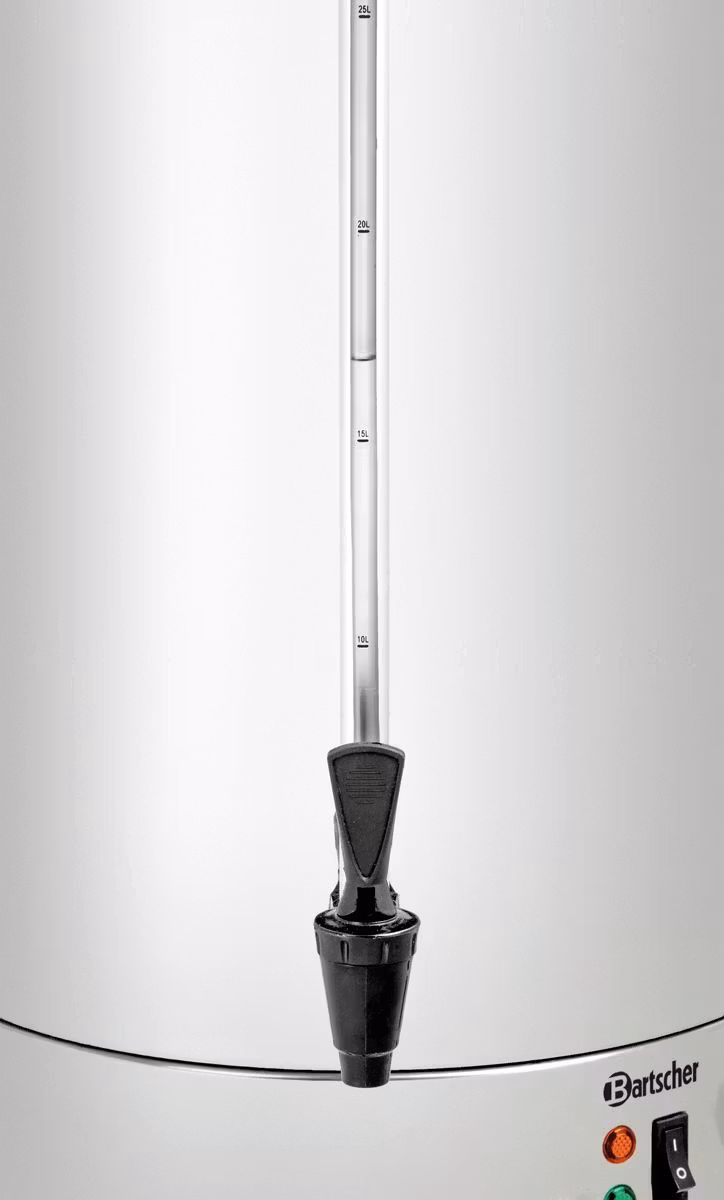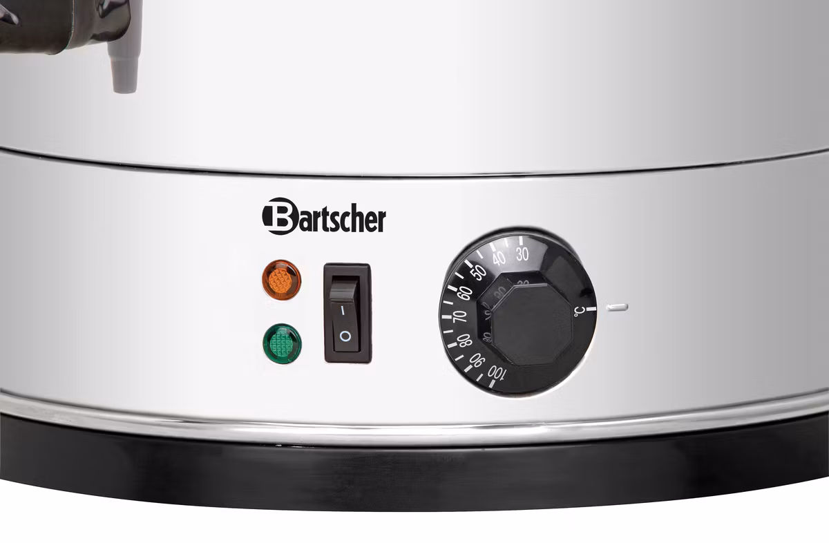 Hetvattenkokare för uppvärmning och varmhållning i stor skala. Hetvattensbehållaren har en kapacitet på upp till 28 liter vilket gör att det passar sig bra till stora evenemang utan problem, oavsett om det är i självbetjäningsområdet eller i baren. Steglös termostatreglering från 30 till 100 °C möjliggör exakt uppvärmning och varmhållning. Den högkvalitativa dubbelväggsisoleringen minimerar värmeförlusterna och minskar energiförbrukningen under permanent drift. Hölje och lock i rostfritt stål garanterar lång livslängd.