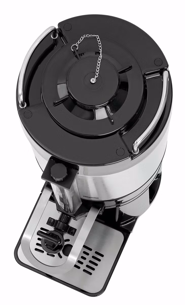 Dubbelväggig termos med dubbelväggig vakuumisolering. Fungerar för både kalla eller varma drycker.  Termosen har en mycket låg temperaturförlust. Termosen är i rostfritt stål och ett rent och snyggt intryck. Utrustad med en lätt avtagbar droppskål.