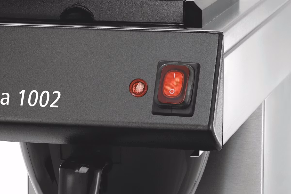 Kaffebryggare med termos i rostfritt stål och med manuell vattenpåfyllning. Brygger en hel kanna 2L på 8 minuter. Idealisk för buffé, catering eller arrangemang. Minsta kokmängd 0,5L.