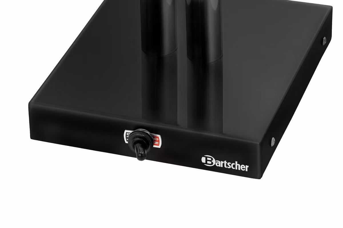 Värmelampa i matt svart stål med en två rörliga lamparmar. Använd denna värmelampa flexibelt för exempelvis matlagningen och vid buffén.