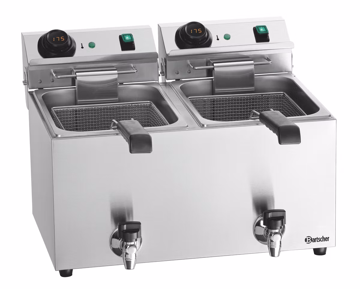 Denna dubbelfritös är utrustad med ett digitalt MDI‑reglage som gör det möjligt att ställa in temperaturen med hög noggrannhet för jämna och perfekta friteringsresultat. De två separata behållarna ger maximal flexibilitet och gör det enkelt att hantera olika rätter samtidigt utan smaköverföring. Med den smarta minnesfunktionen kan ofta använda temperaturer sparas, vilket effektiviserar arbetet vid exempelvis hög belastning. Temperaturindikering i realtid och tydliga kontrollampor ger trygg och säker drift. Det svängbara värmeelementet förenklar rengöringen och säkerställer hög hygienstandard. Det robusta höljet i rostfritt stål är byggt för att tåla intensiv professionell användning och är enkelt att hålla rent.