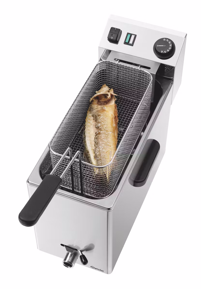 Fritös SNACK XL Plus, 1x8L är utrustad med en extra lång 400 mm bassäng som ger gott om plats för längre livsmedel som exempelvis fiskfiléer och frikadeller