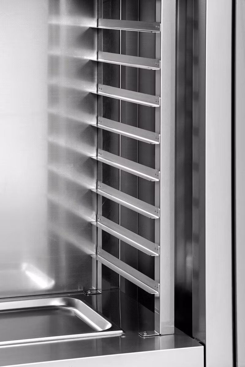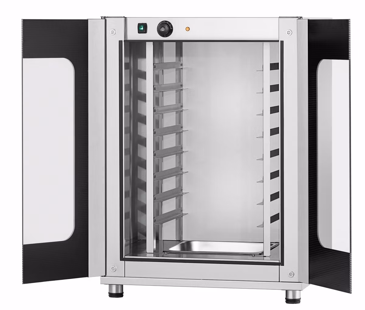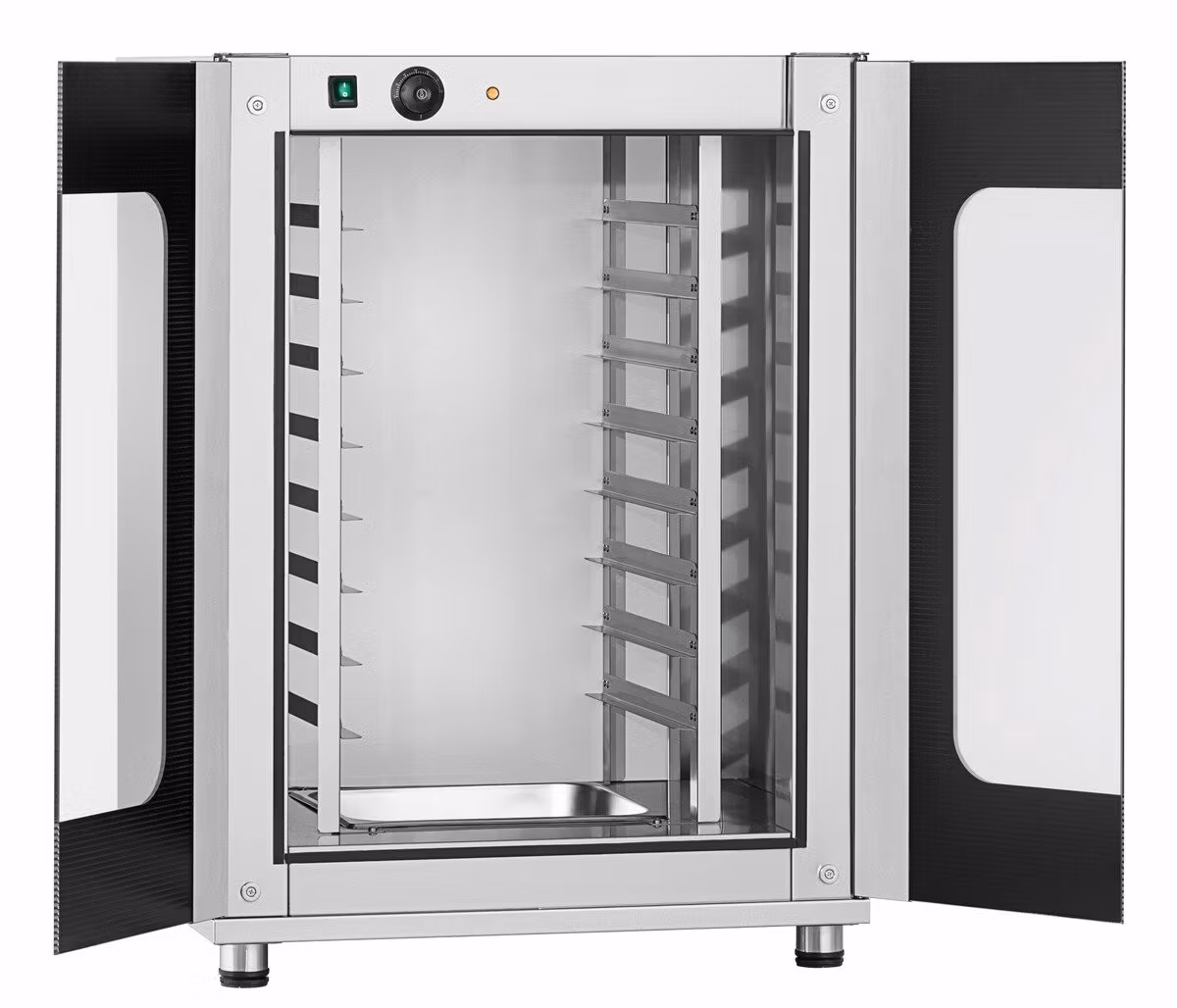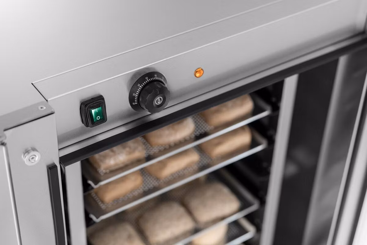 Manuellt jässkåp med plats för 8st plåtar med måtten 442x320mm, 2/3 GN. Max temperatur 85ºC. Vattenskål för luftfuktning.