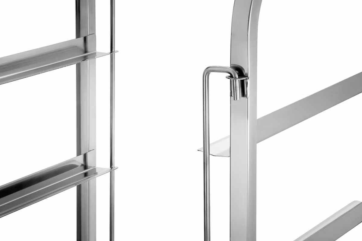Diskkorgvagn med 7 gejder. Gejdrarna kan fyllas på från båda sidor, vilket sparar mycket utrymme. Utrustad med korglås finns på fram- och baksida Korglåset gör att diskkorgarna inte glider iväg, tippar eller faller ned. Utrustad med 4 hjul varav 2 är låsbara.