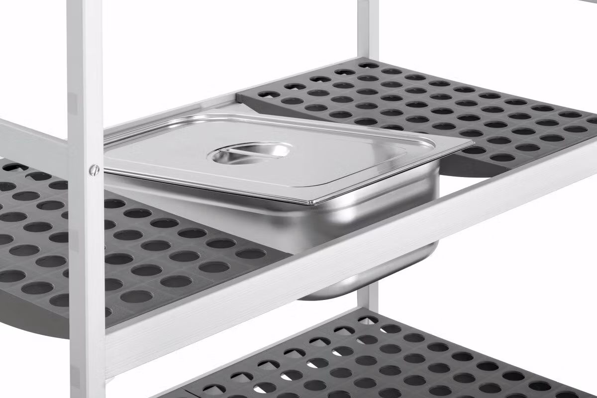 Praktisk fördel att hyllplanen kan maskindiskas tack vare användning av GN-kantiner i stället för hyllplan