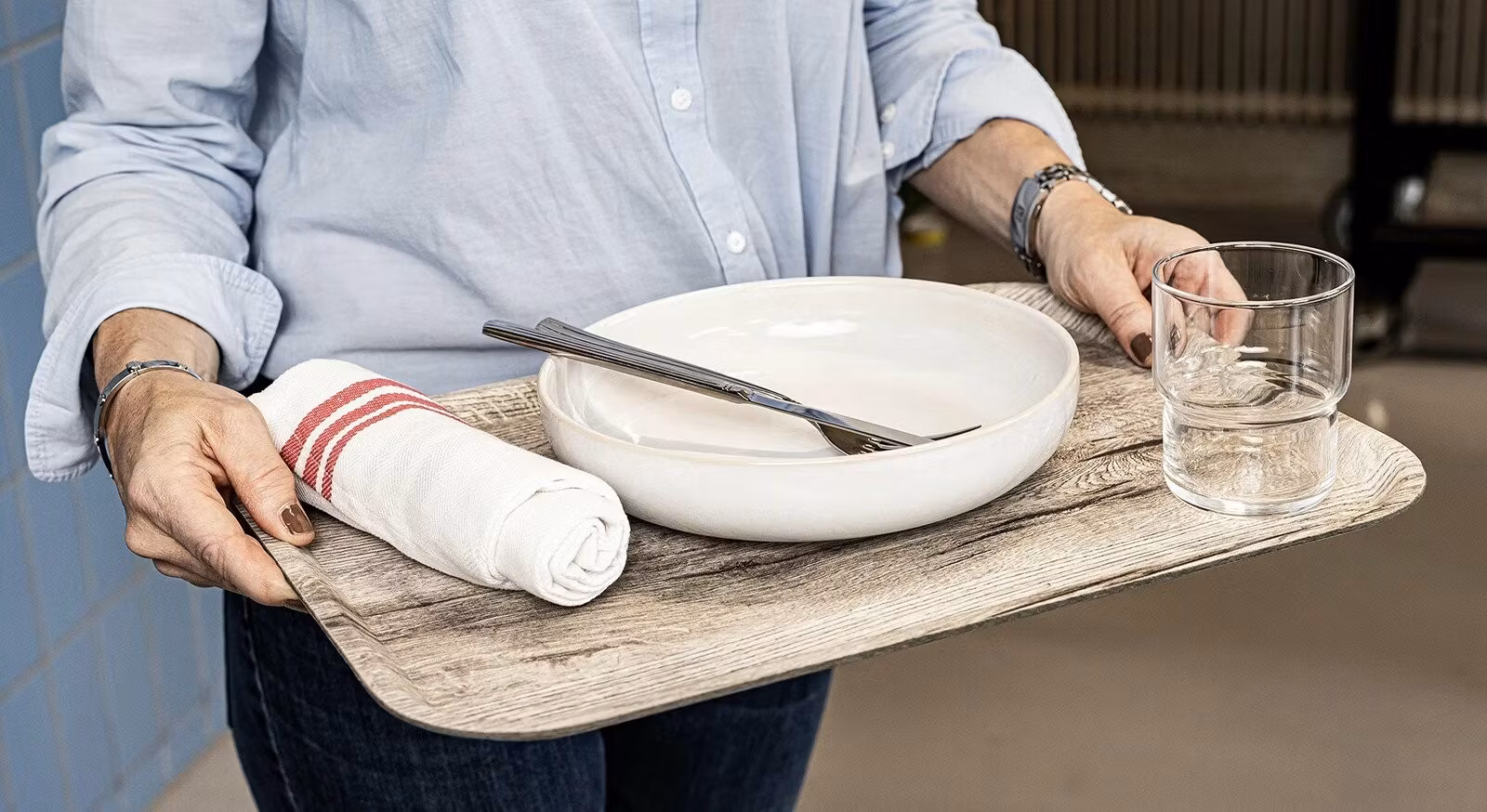 Ljus bricka 43x33 cm i laminerat kraftpapper med en matt texturerad finish för en mer äkta look. Brickan fungerar utmärkt i olika typer av serveringsmiljöer och tål temperaturer mellan 10°C - 100°C. Framtagen för att tåla dagligt slitage.